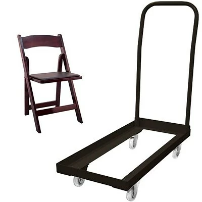 Each folding chair cart provides an easy storage and transportation solution for up to 15 wood folding chairs. These folding chair carts feature 4 heavy duty casters and a durable powder coated steel frame. Each wood folding chair features a true beechwood frame in a offering a far more durable construction than competing luaun folding wood chairs. These wedding chairs include a durable, easy-to-clean vinyl upholstered seats for a soft, comfortable seating surface. Wood folding chairs are easy to transport, especially with a folding chair caddy, providing a classic solution, versatile option for most wedding venues, banquet halls and event facilities.