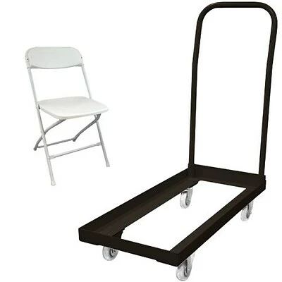 Each folding chair cart provides an easy storage and transportation solution for up to 40 dining height folding chairs. These folding chair carts include 4 heavy duty casters and durable powder coated steel frame. Each folding chair features a light weight polypropylene plastic seat and back and a powder coated frame with cross brace between each chairs’ back legs, providing stability and resistance against sinking into soft surfaces. Non-marrying glides protect surfaces from scratches or damage and their light weight plastic foldable chair design makes for easy transportation, storage, setup and takedown, especially when paired with a folding chair caddy.