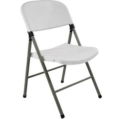 These oversized white plastic folding chairs with comfortably contoured seats and backs provide a higher level of comfort over standard sized folding chairs! The seat of each plastic folding chair for sale has a waterfall style leading edge providing a means for better circulation and great overall comfort when seated. These plastic folding chairs also feature a sturdy 1-inch round, 18 gauge steel frames with welded steel crossbars in both the front and back for long term durability.