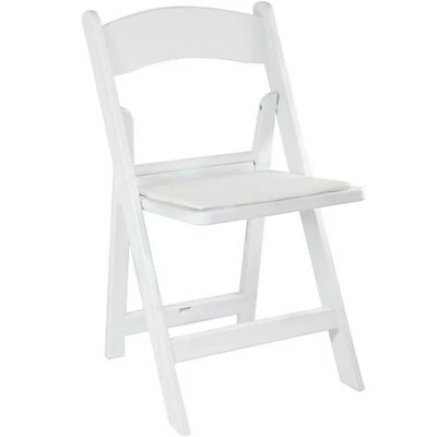 Attractive, comfortable Advantage white resin folding chairs are the perfect seating solution for indoor or outdoor venues. These wedding chairs are rated to hold up to 1,000 lbs of static weight with metal bracing in each seat to prevent breakage from thick underseat rivets. Each padded folding chair features double tubing through the lower portion of each folding chair leg. These high quality white wedding chairs also include padded seating surfaces, providing long-lasting comfort making them an excellent choice for caterers, rental chair stock, wedding and event facilities.