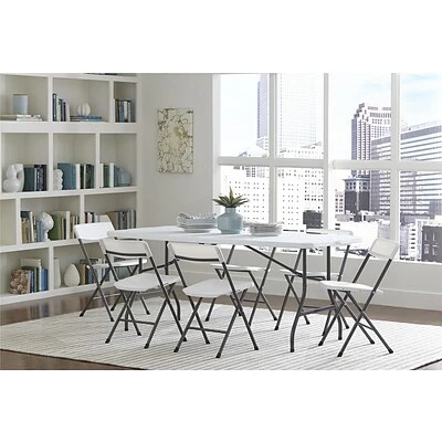 Make a temporary seating arrangement with these event chairs. The molded seats, molded backs, and powder-coated steel frames provide stability under everyday indoor conditions. These Cosco folding chairs have non-marring leg caps to keep floors free of scratches and scuffs.