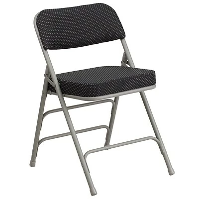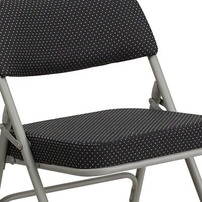 Folding chairs are a practical choice for social activities and for everyday use in the home. Folding chairs offer a simple and compact storage solution. This portable chair can be used in a variety of indoor or outdoor events. This HERCULES Folding Cha ir was built to take on heavy usage with an 18 gauge steel frame, triple braces and leg strengthening support bars. The non-marring floor glides keep floors scratch-free for your indoor occasions. This chair was designed to keep you comfortable with an extra thick padded seat and back. After an event you can stack them on top of each other or in a row. To make transporting even easier, equip yourself with the appropriate sized folding chair dolly to make event management more effortless.