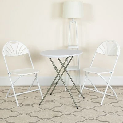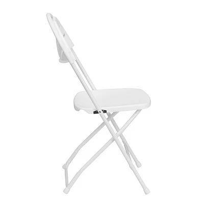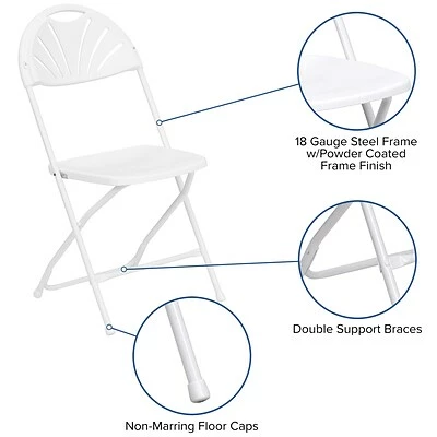 Plastic folding chairs are the choice of many event planners for their lightweight design, ease of cleaning, and versatility among events. This fan back chair will be great for hosting outdoor events and in the home for additional seating. The textured seat ensures safe and comfortable seating. After an event you can stack them on top of each other or in a row.