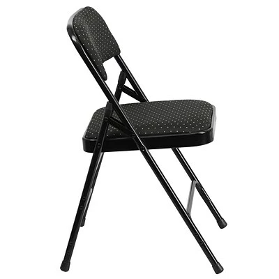 Folding chairs are a practical choice for social activities and for everyday use in the home. Folding chairs offer a simple and compact storage solution. This portable chair can be used in a variety of indoor or outdoor events. This HERCULES Folding Cha ir was built to take on heavy usage with an 18 gauge steel frame, triple braces and leg strengthening support bars. The non-marring floor glides keep floors scratch-free for your indoor occasions. This chair was designed to keep you comfortable with a p added seat and back. After an event you can stack them on top of each other or in a row. To make transporting even easier, equip yourself with the appropriate sized folding chair dolly to make event management more effortless.