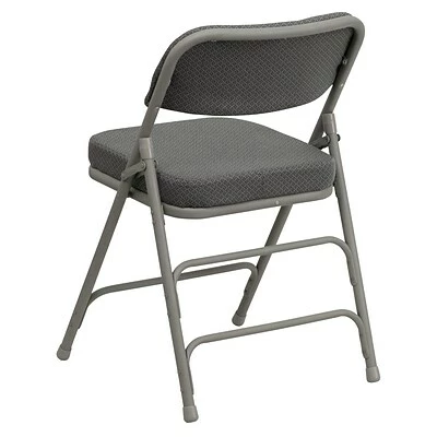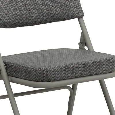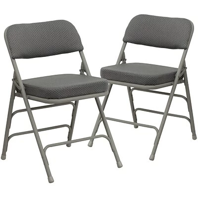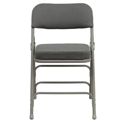 Ensure that your guests, clients, or parishioners pay more attention to you than the clock with this ultra-comfortable Flash Furniture HERCULES Series folding chair. This chair is a practical choice for social activities and everyday use in the home due to their compact storage capabilities. The steel folding chair is commercial grade to withstand heavy and daily use in any industry. Take your regular group meetings outdoors instead of staying in a stuffy room or host beautiful outdoor events with the arrangement of this two-pack of padded folding chairs. While suitable for outdoor use, store the chair indoors to protect the frame from extreme moisture. Its 18-gauge triple-braced curved steel frame supports up to 300 lbs. while the nonmarring floor glides protect your flooring from scuffs and scrapes. The uses are endless with this multipurpose chair to fulfill your seating needs for your business or home. With nothing to assemble the chair comes ready to service your needs.