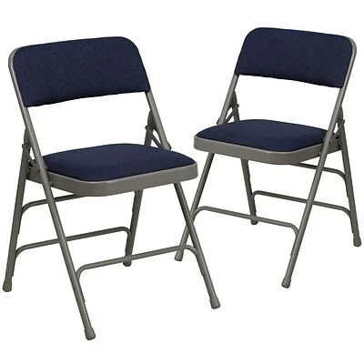 Host Thanksgiving at your house and leave out “bring your own chair” on the invite. Flash Furniture has got you covered with this two-pack of padded folding chairs. Each of these heavy-duty steel folding chairs is built for commercial businesses who host a myriad of events and need to accommodate people of varying sizes. Portable chair is perfect in community centers to transport from storage to venue floor. Change the scenery with this outdoor metal chair by taking the party outside. Take care of your chair, so it lasts you many years by storing indoors. Its 18-gauge curved steel frame is triple-braced with leg strengthening support bars to hold up to 300 lbs. while the nonmarring floor glides protect your flooring from scuffs and scrapes. Celebrate all family events at your home for guests to sit comfortably atop these upholstered folding chairs. The chairs come assembled to be of service as soon as they’re delivered.