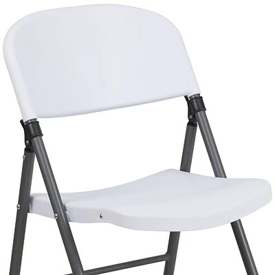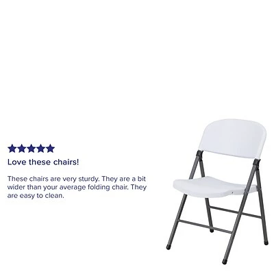 Feel free to host the holidays this year or plan a perfect event or gathering with this Flash Furniture HERCULES Series granite white plastic folding chair with charcoal frame. A practical choice for party rental companies, event venues, or for regular use in your home, this folding chair with steel frames is built to last. A molded seat provides comfort to guests while the heavy-duty frame supports up to 330 lbs. The textured seat ensures safe and comfortable seating. After use, place the chairs from the two-pack on top of each other or in a row. You’ll always have extra seating on hand for guests for a game night, party, and Thanksgiving or Christmas dinner. The plastic chair offers a versatile seating solution while being easy to maintain and is designed for portability.