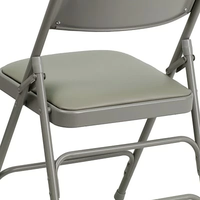 Constructed from a durable steel, powder-coated in gray, with 1″ thick padded gray vinyl seat and back