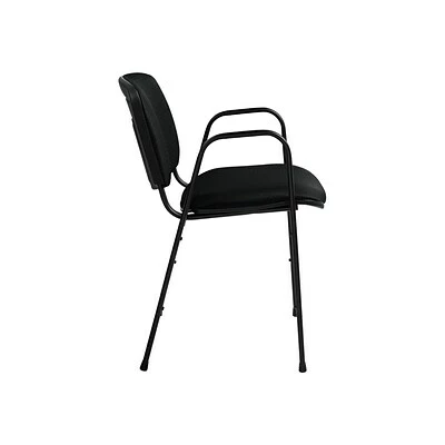 Keep these portable chairs handy for meetings, presentations, business lunches and impromptu gatherings. Stackable construction makes it easy to store the chairs in small spaces. The patterned black fabric cushioning and dual armrests offer comfort during long presentations or work sessions. Designed to be ergonomic, these guest chairs provide ample lower back support for those with lumbar pain. Made with black plastic and fabric cushioning, these Offices To Go ergonomic stack chairs go well with any decor.