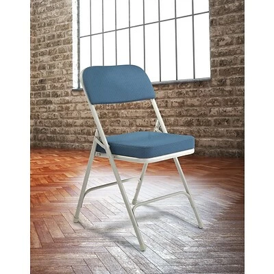 Our 3200 Series has brought the potential comfort of folding chair to a whole new level with a super-soft 2″ thick cushion. Features include an institutional-grade vinyl or fabric upholstered box seat on a Masonite board. The large contoured padded backrests are fully covered in matching vinyl or Scotchgarded fabric on both sides. The institutional-grade frame is made from heavy-duty powder-coated 18-gauge round tubing with two U-shaped double-riveted cross-braces – one in front and one in the back – to securely support the double-hinged legs. Color-coordinated V-tip stability plugs provide added reinforcement at the frame’s junction and matching replaceable glides prevent floor damage. The 3200 Series meets MAS Certified Green and ANSI/BIFMA standards.
