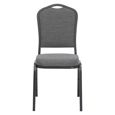 Greystone colored fabric covered plush foam padded upholstered seat and back supported by an 18 gauge steel frame