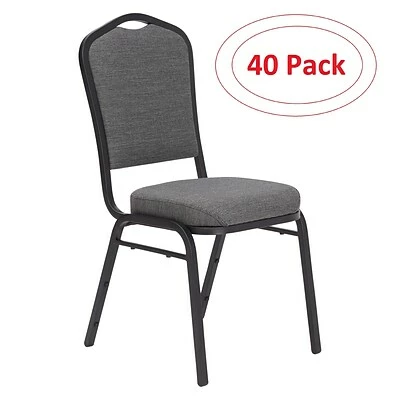 NPS 9300 Series Deluxe Fabric Upholstered Stack Chair with Strong Steel Frame plus an Under-Seat H-Shaped Brace for Extra Support, Natural Greystone