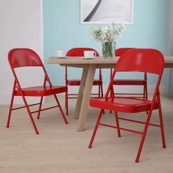 Promo β Folding Chairs Flash Furniture HERCULES Series Metal Folding Chair, 4/Pk (4BDF002RED) π