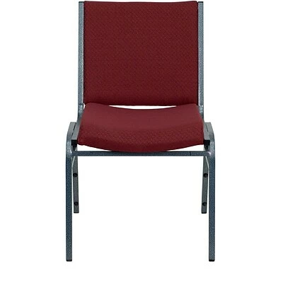Flash Furniture HERCULESβ’ Heavy duty multi purpose stack chair features 18 gauge high carbon steel for optimum stability. Chair is made of burgundy patterned fabric upholstery with 3” thickly padded seat offering comfort.