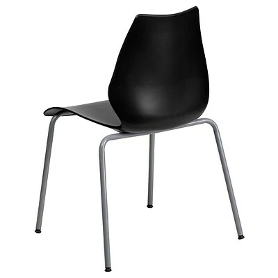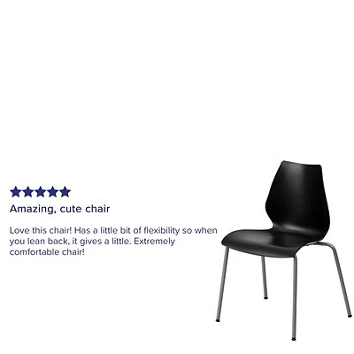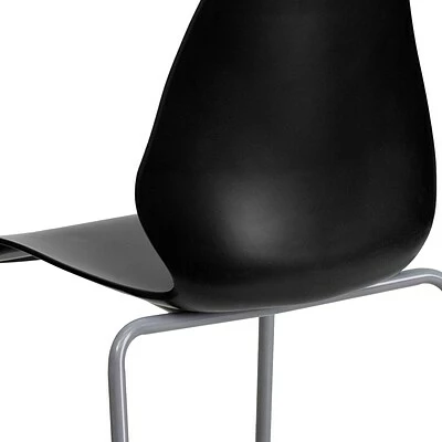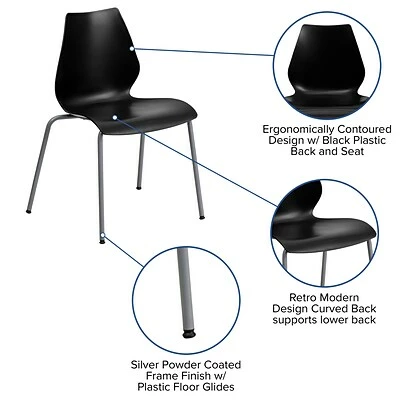 Flash Furniture Hercules series stackable chair in black color offers retro modern design and features silver powder coated finish. 12320 oz Chair delivers durable polypropylene seat with non-marring plastic floor glide.