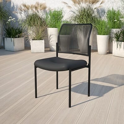 Create a comfortable setting for your guests that makes waiting or meetings more pleasant. This side chair brings a big presence to your space without overcrowding. The flexible, ventilated mesh has built-in lumbar support for a comfortable sitting expe rience. Quickly store this chair when you need to clean the area or use it for other purposes.