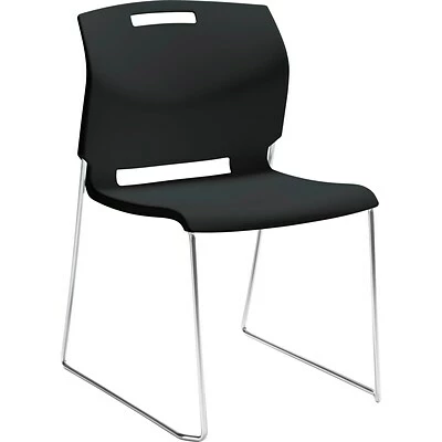 The one piece seat-back polypropylene shell offers a back cut-out for easy cleaning and a hand-hold for ease of transportation