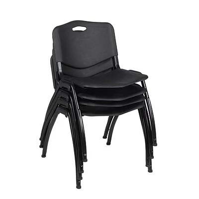 The “M” stack chair by Regency offers durability, style and value. This sturdy, lightweight stack chair is ideal for cafeterias, lunch rooms and break rooms and is available in Blue, Black, Burgundy and Grey finishes. Its black metal frame and contoured plastic seat and back are strong and easy to clean. This versatile stack chair easily stores away in stacks of 12 and features a built in handle for easy mobility. The “M” ships assembled and is ready to use right out of the box. All Regency chairs are backed by a 5-year limited manufacturer’s warranty on chair bases and frames.
