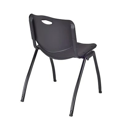 The “M” stack chair by Regency offers durability, style and value. This sturdy, lightweight stack chair is ideal for cafeterias, lunch rooms and break rooms and is available in Blue, Black, Burgundy and gray finishes. Its black metal frame and contoured plastic seat and back are strong and easy to clean. This versatile stack chair easily stores away in stacks of 12 and features a built in handle for easy mobility. The “M” ships assembled and is ready to use right out of the box. All Regency chairs are backed by a 5-year limited manufacturer’s warranty on chair bases and frames.