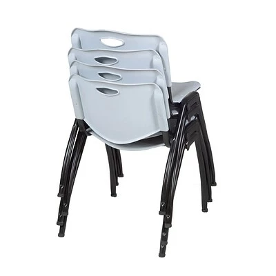 The “M” stack chair by Regency offers durability, style and value. This sturdy,lightwieght stack chair is ideal for cafeterias, lunch rooms and break rooms and is available in Blue, Black, Burgundy and Grey finishes. Its black metal frame and contoured plastic seat and back are strong and easy to clean. This versatile stack chair easily stores away in stacks of 12 and features a built in handle for easy mobility. The “M” ships assembled and is ready to use right out of the box.All Regency chairs are backed by a 5-year limited manufacturer’s warranty on chair bases and frames.