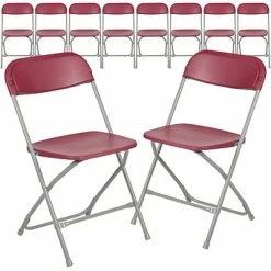 Commercial-grade plastic folding chairs designed to be lightweight but durable. This product is engineered and built with premium materials that will withstand heavy duty use for event, business and home usage. These folding chairs will nest easily to stack 50 high from the floor and feature a textured contoured plastic seat for the highest level of comfort and security. With a variety of color options you can choose what would best pair with your event needs. This is a commercial-grade on-demand seating solution convenient for weddings, school functions, barbecues, game night, and catering events. Stay comfortable during social events with the gentle contour shaped seat and back. Folding chair highlights: – Ready-to-use with no assembly required – Hassle free stackable storage – Textured seat designed for maximum comfort and security – Floor caps to prevent surface and flooring damage – 650LB weight capacity These low-maintenance party event chairs wipe down easily after luncheons and stack neatly for storage or floor maintenance. Make a smart investment by purchasing multiple plastic folding chairs for your rental business, waiting room or corporate training rooms. Purchase our folding chair truck for quick and easy set up and take down.